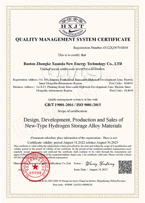 質(zhì)量管理體系認(rèn)證證書-ISO9001