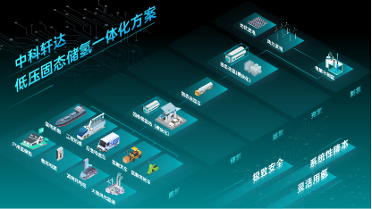 氫氣具有分子小、極易逃逸和難壓縮等特性,如何高安全、高密度、低成本儲(chǔ)運(yùn)氫氣,目前仍是制約氫能產(chǎn)業(yè)發(fā)展的痛點(diǎn),儲(chǔ)氫技術(shù)是氫能應(yīng)用的關(guān)鍵核心技術(shù)之一。中科軒達(dá)結(jié)合公司在高容量固態(tài)儲(chǔ)氫材料和儲(chǔ)氫裝備系統(tǒng)的研發(fā)、生產(chǎn)和應(yīng)用,針對可再生光伏發(fā)電和風(fēng)力發(fā)電生產(chǎn)的綠氫,研究開發(fā)了一種固態(tài)儲(chǔ)氫“充、運(yùn)、儲(chǔ)、用”低壓一體化技術(shù)方案,該方案是一種氫氣儲(chǔ)存、運(yùn)輸及應(yīng)用的綜合解決方案。